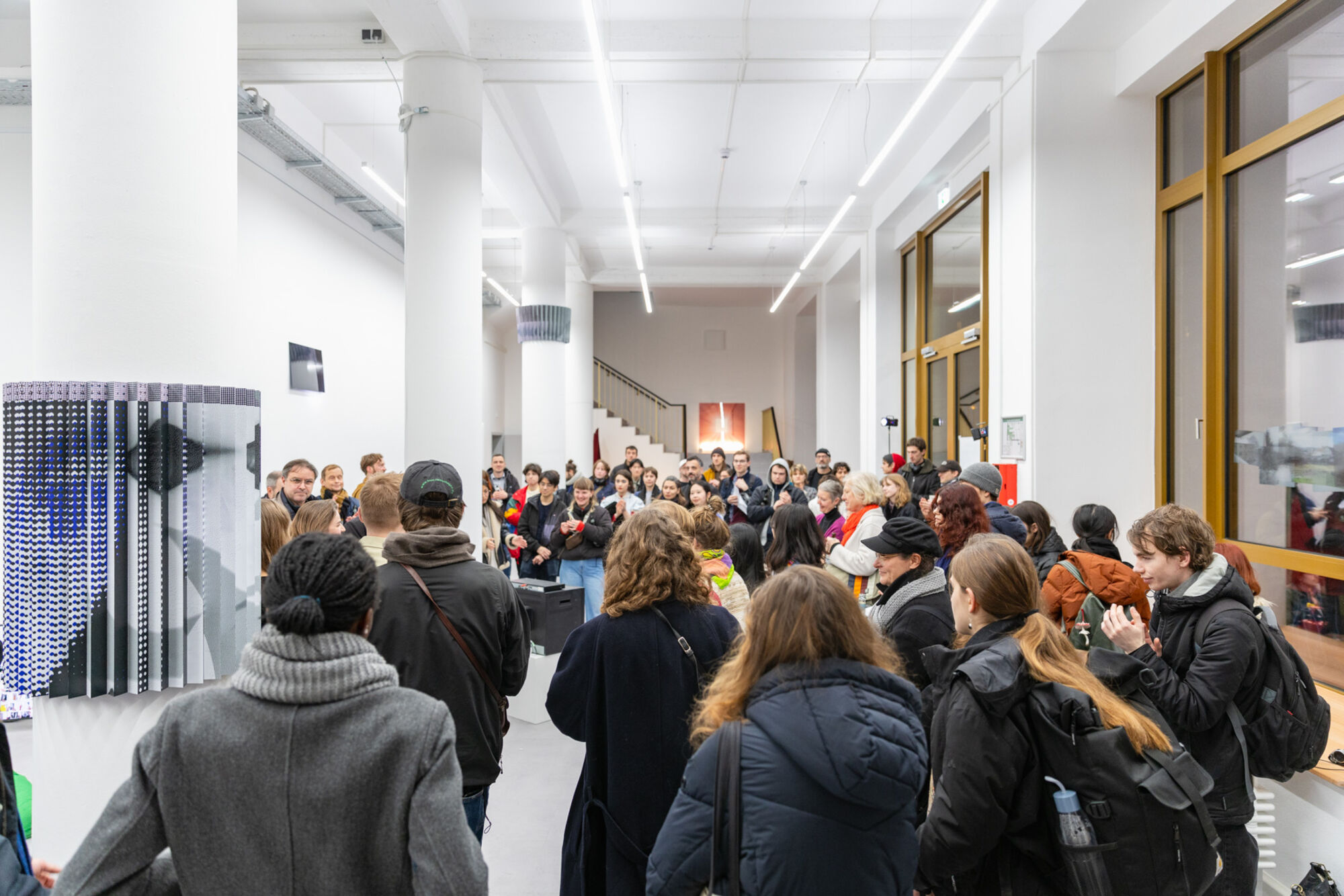 Der große Ausstellungsraum im Erdgeschoss des Interims eröffnet den Studiengängen die Möglichkeit sich mit Projekten und Ausstellungen vorzustellen und den Austausch mit der Gesellschaft zu intensivieren. Die räumliche Ausstattung, die Lage direkt am Pirnaischen Platz und die gute Sichtbarkeit durch große Schaufenster bieten sehr gute Rahmenbedingungen. Gegenwärtig wird am Konzept für die Bespielung der Räume durch alle Studiengänge gearbeitet.