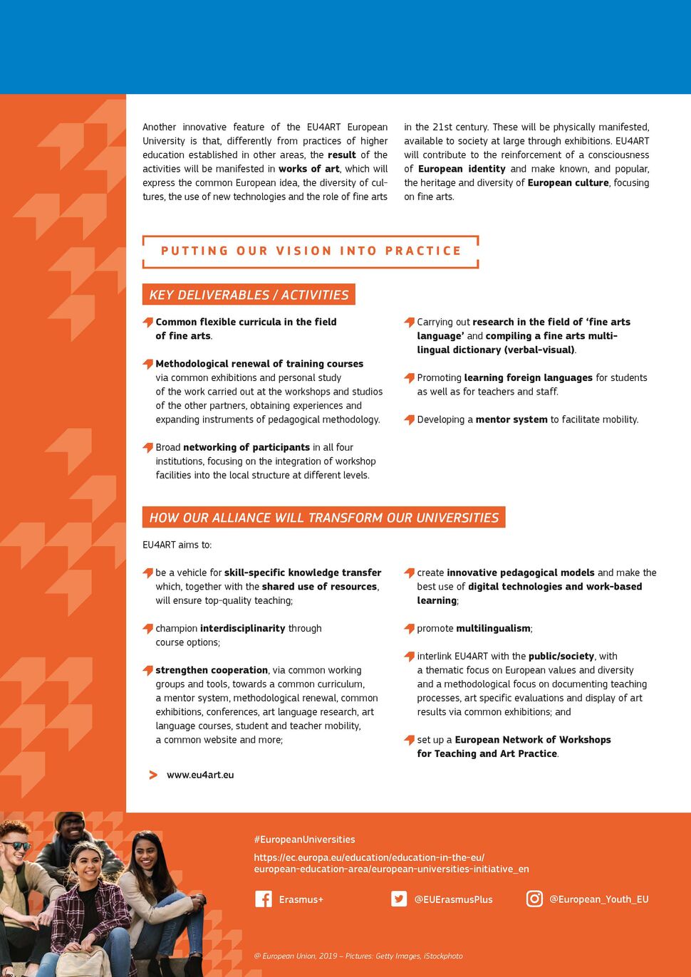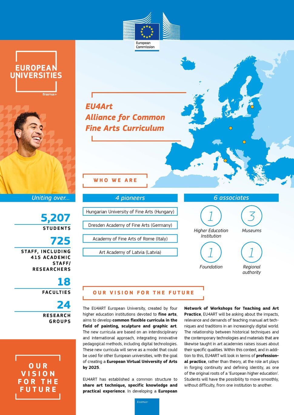 EU4Art is a model alliance of four art colleges from Budapest, Dresden, Riga and Rome in the new EU program "European University", which will receive funding of 5 million euros from Brussels for three years to develop new forms of cooperative teaching and study.