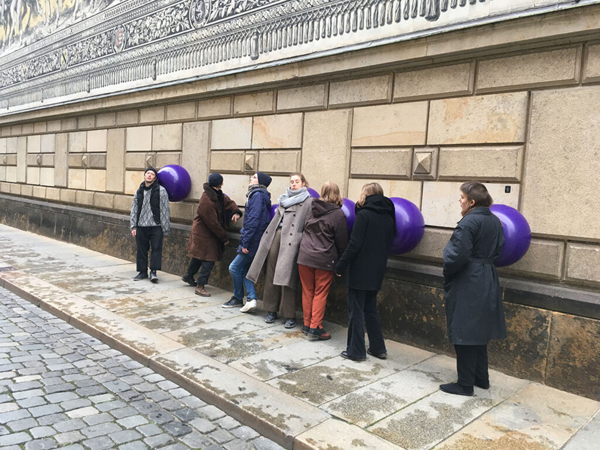 Der Studienort Dresden ist erweitertes Aktionsfeld: der öffentliche Raum, Architektur und Geschichte, die kulturellen Einrichtungen, Museen und Sammlungen Dresdens werden Gegenstand künstlerischer Auseinandersetzung und Projektionsraum künstlerischer Ideen. Auch der soziale und gesellschaftliche Raum wird ausgelotet. Das Zeigen von Kunstwerken ist eine persönliche Stellungnahme im gesellschaftlichen und alltäglichen Kontext. Der Raum der Hochschule nimmt diese Kommunikation modellhaft vorweg.