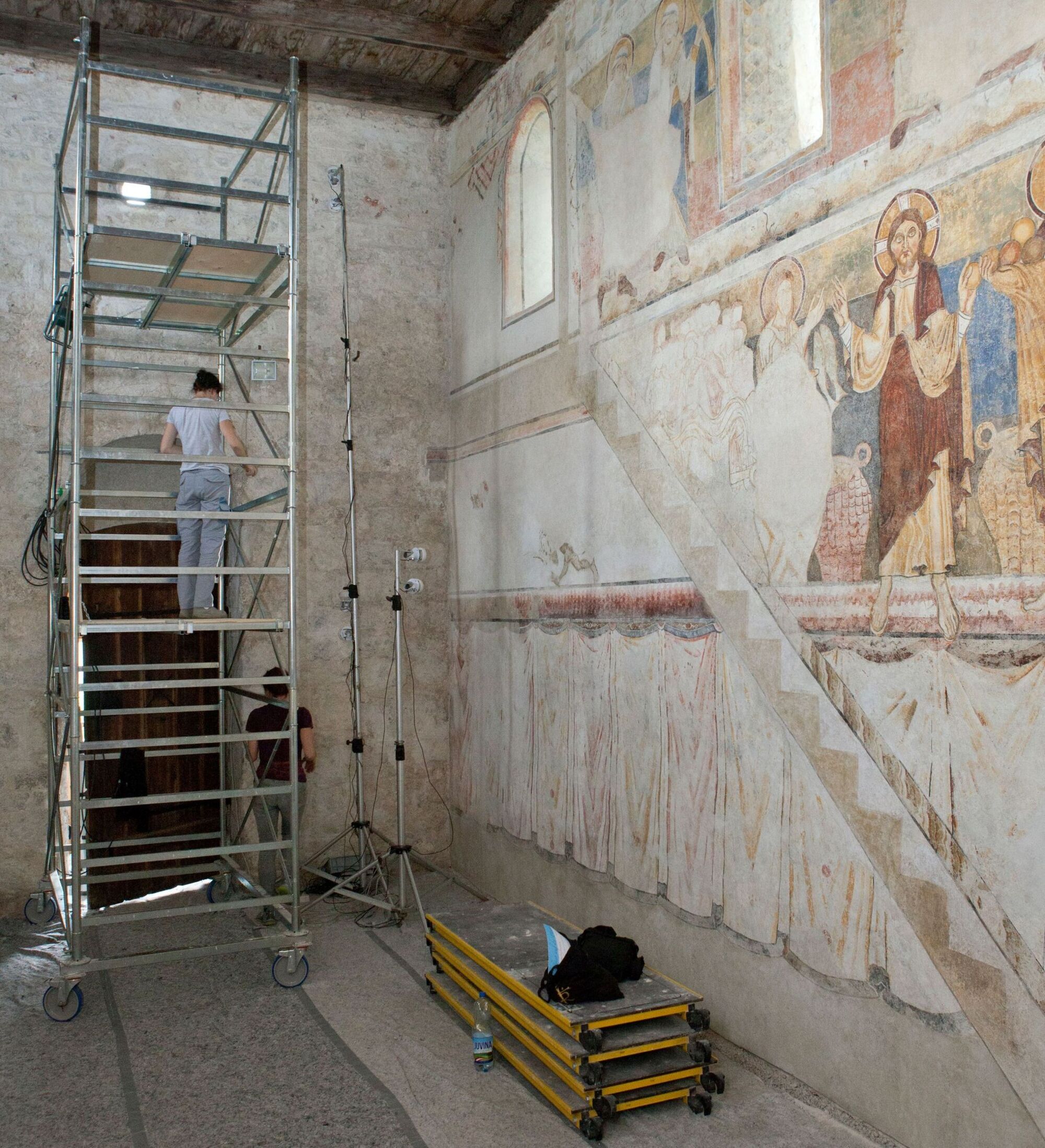 © Markus Santner Präventive und damit eingriffsarme Konservierungsschritte finden vermehrt Eingang in aktuelle Restaurierungskonzepte. Ein Ziel ist die nachhaltige Entwicklung von Erhaltungsstrategien und die Erarbeitung von Monitoringkonzepten. Die Erkenntnisse aus der Erforschung der Restaurierungsgeschichte bilden eine wichtige Basis für das Verständnis von überlieferten Erscheinungsbildern und somit auch für die weiteren Entscheidungen. In der Praxis der Restaurierung wird die Frage des Umgangs mit Fehlstellen häufig kontrovers diskutiert, weshalb die Erarbeitung und Vermittlung von Restaurierungszielen ein wichtiges Thema darstellt. In diesem Kontext steht auch die Förderung der Kommunikationsfähigkeit und Teamarbeit der Studierenden, die für das spätere Berufsleben genauso grundlegend sind, wie die Fähigkeit zur Koordination und Präsentation von wissenschaftlichen Erkenntnissen.