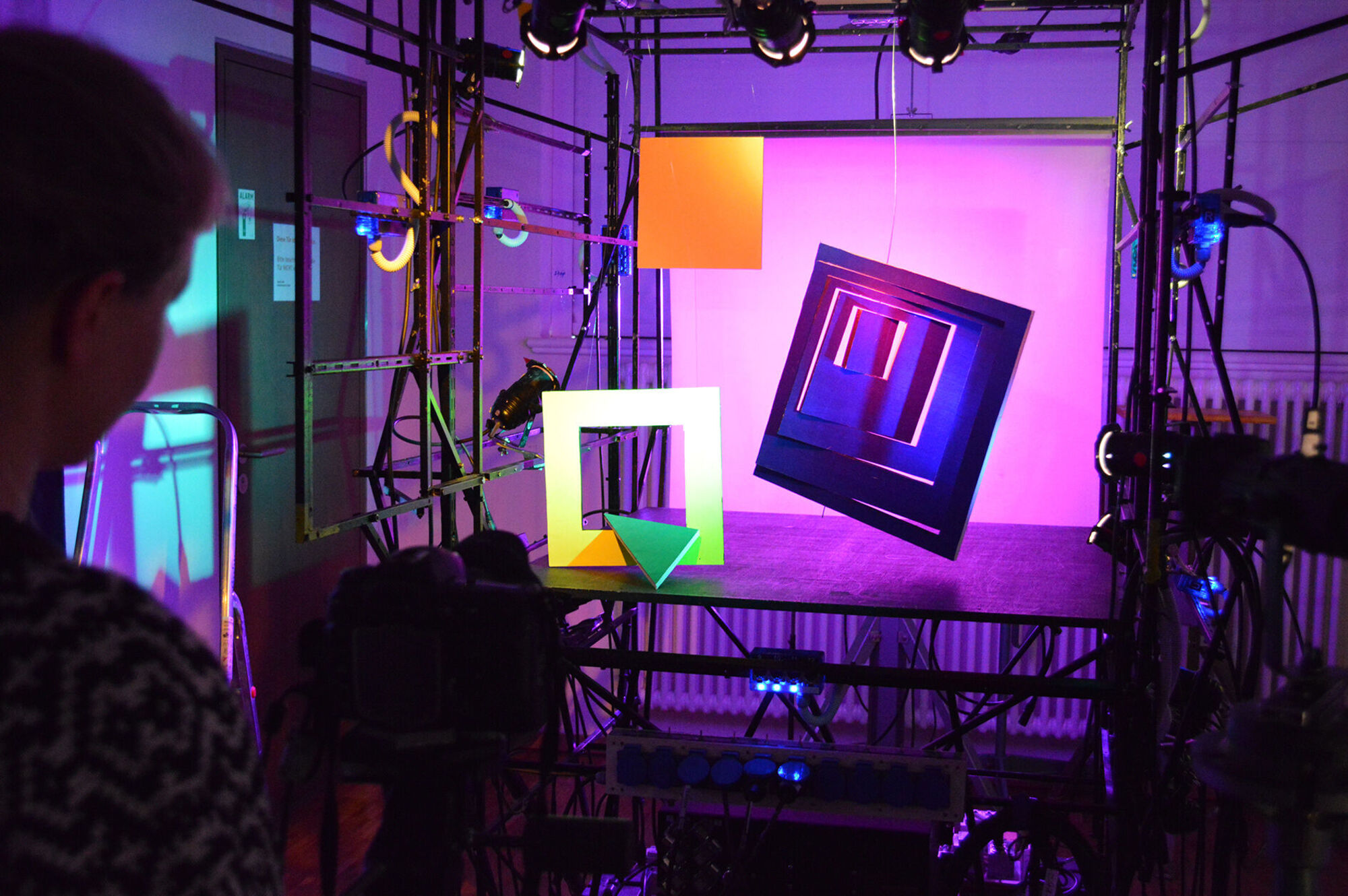 - Untersuchungen zum Einfluss farbigen Lichts auf farbige Formen.