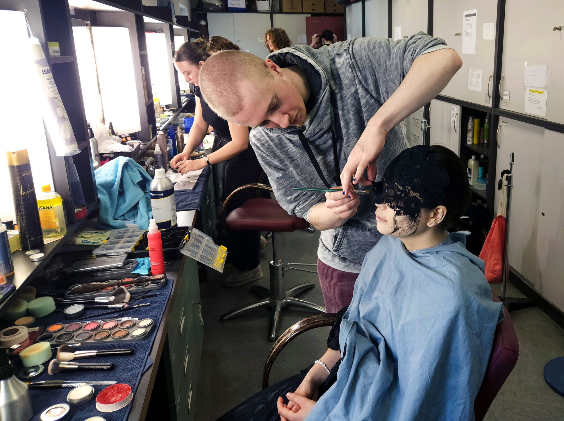 Die Entwicklung von Farb- und Formgefühl sind die Grundlage für die stilsichere Erarbeitung von Aufgaben nach historischen Vorlagen und zeitgenössischen Anforderungen. Im Einzelnen werden die Studierenden dabei an diverse Make-up-Techniken, historische sowie moderne Frisurengestaltung, Perückenkonzeptionen und verschiedene Spezialeffekte herangeführt.