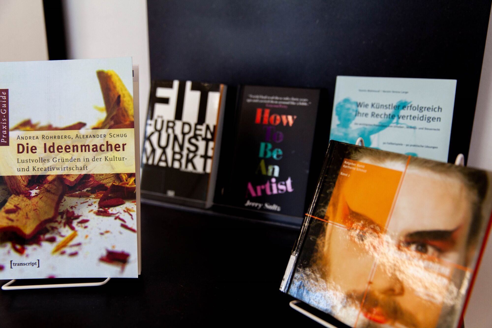 In der Bibliothek der HfBK Dresden auf der Güntzstraße kannst du dich zu verschiedensten Themen des Berufseinstieges, der Selbstständigkeit und Existenzgründung informieren. Der Präsenzapparat des Career Service bietet eine stetig wachsende Auswahl an Publikationen und Broschüren. Nachfolgend findest du eine Übersicht über die einzusehende Literatur.