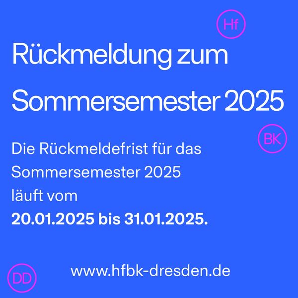 Rückmeldefrist für das Sommersemester 2025 läuft vom 20.01.2025 bis 31.01.2025.