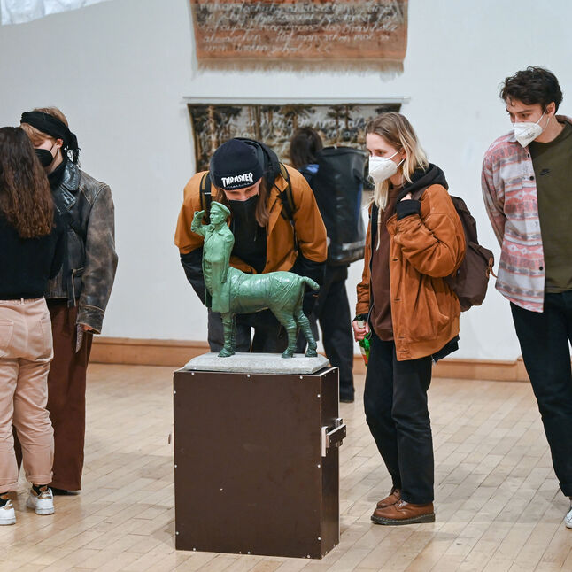 Mit Arbeiten von Lea Corves, Robert Czolkoß, Mona Freudenreich, Mira Friedrich, Stefanie Hollerbach, Patryk Kujawa, Alex Lüders, Isabell Meldner Michael Merkel, Josef Panda, Ana Pireva, Georg Ruppelt, Yeung Song, Ivy Tanit, Katharina Wilhelm und Tillmann Ziola.