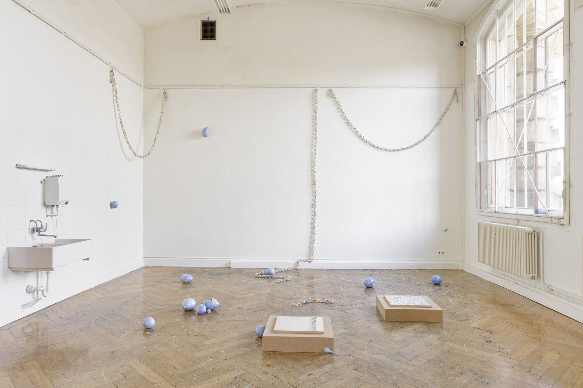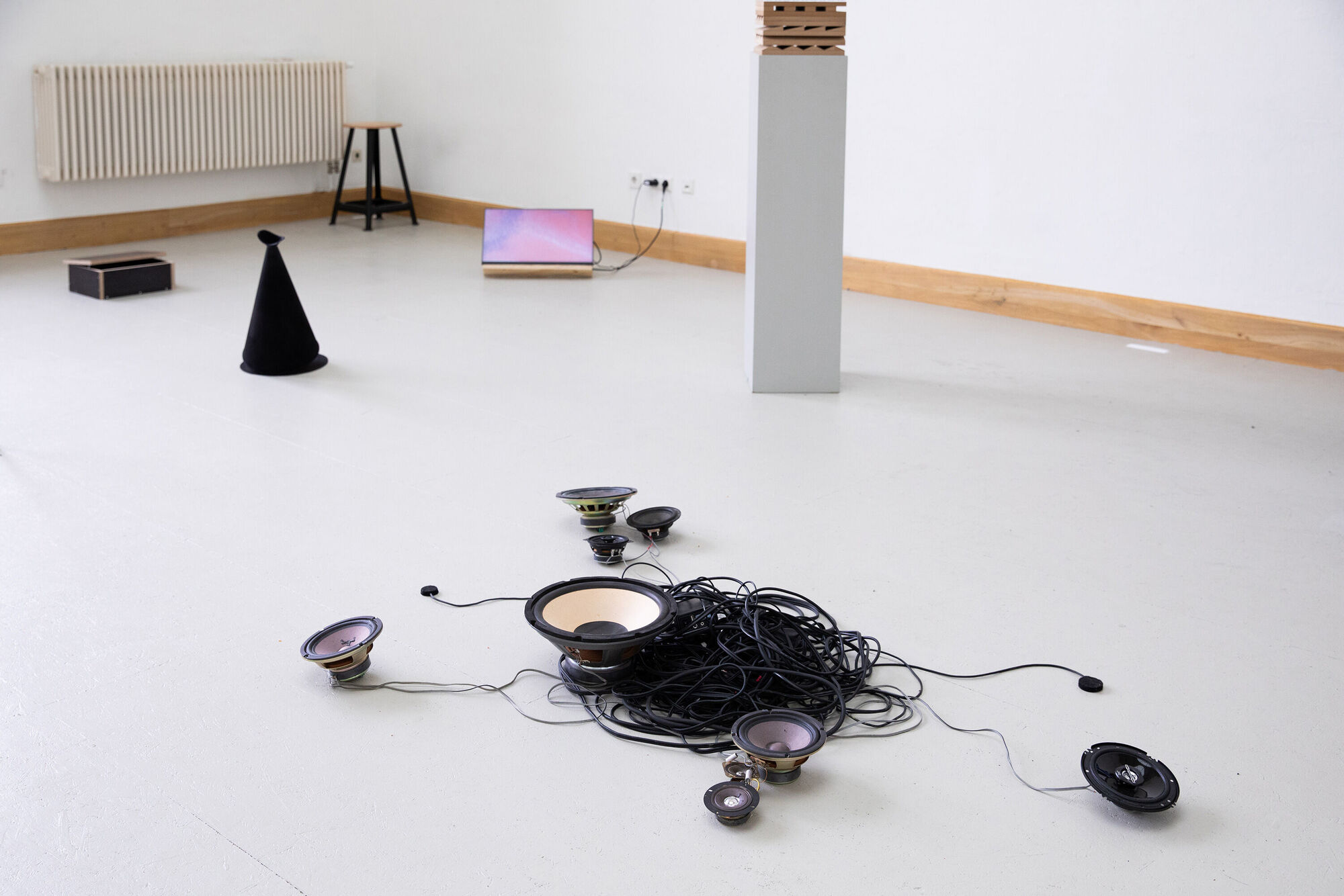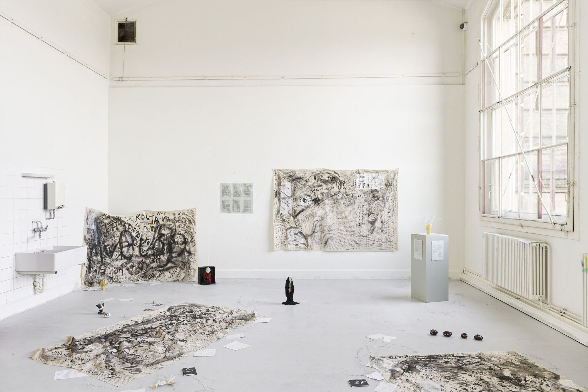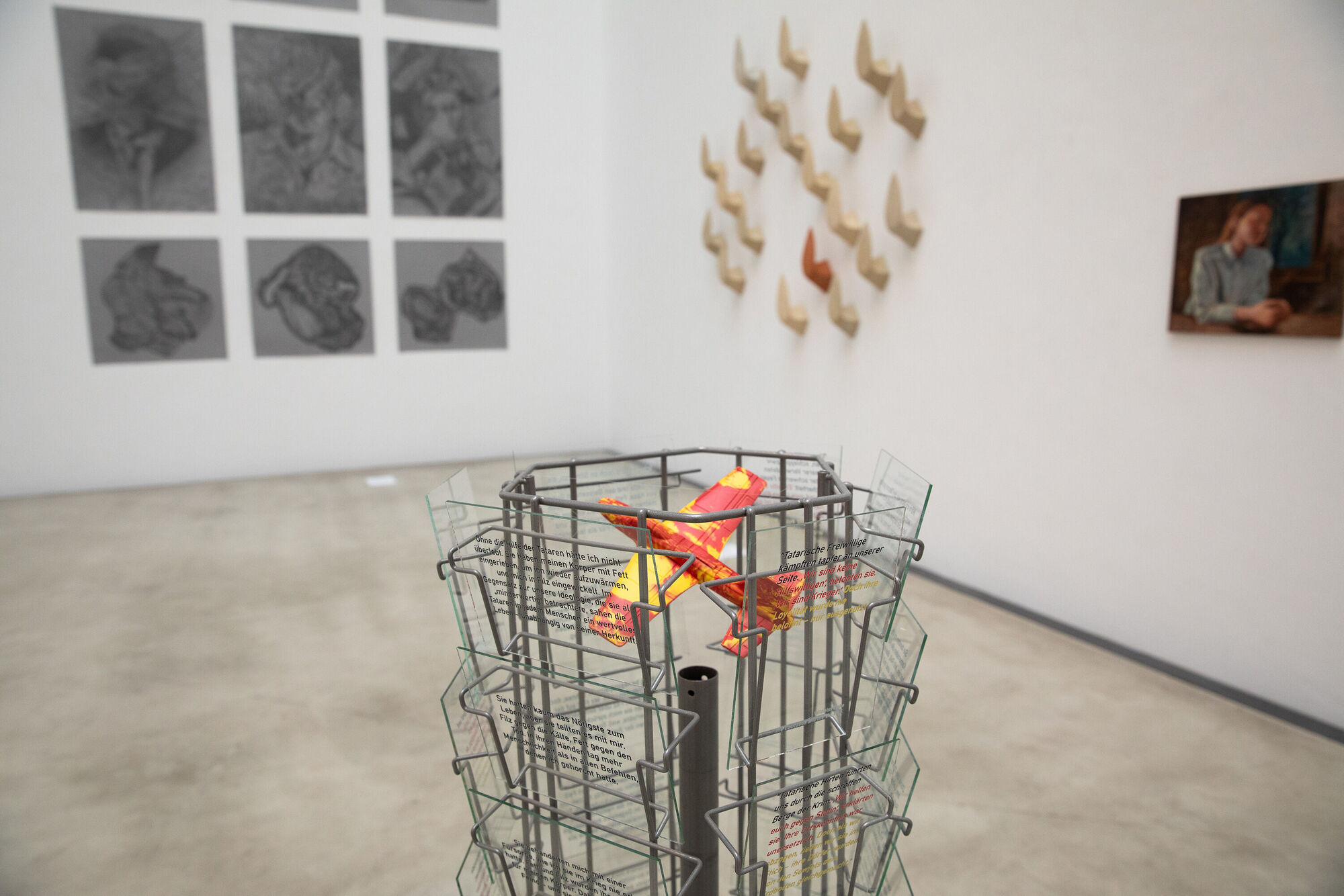 In der diesjährigen Diplomausstellung sind Arbeiten von 42 Diplomandinnen und Diplomanden zu sehen. Viele der gezeigten Arbeiten reagieren unmittelbar auf die Räume mit ihren architektonischen Gegebenheiten. So finden sich neben den klassischen künstlerischen Medien wie Malerei und Zeichnung, raumgreifende Videoinstallationen, Klangarbeiten und ein virtueller Raum, der die Betrachter:innen in die Erinnerung der Künstlerin eintauchen lässt.