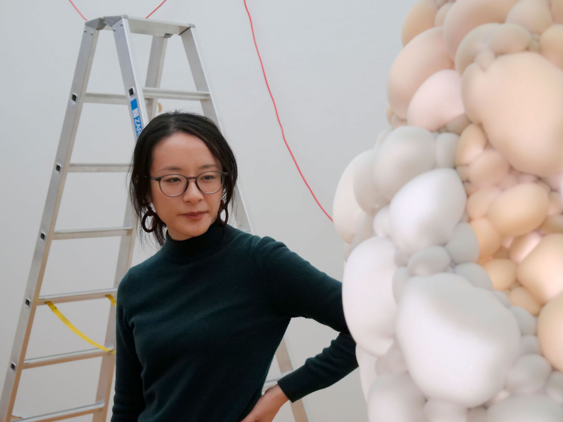 Si Cheng (geb. 1994 in Xinjiang) schafft Arbeiten aus Schaumstoff, Textil und handgeschöpftem Papier, die an biomorphe Formen, weiche Haut und Netzwerke erinnern und Themen wie Vergänglichkeit und Vergehen erkunden. Einige ihrer Werke befassen sich mit dem Lebenszyklus eines Oktopus und verdeutlichen die Zerbrechlichkeit von Erinnerung sowie von Wissen, das über die Zeit verloren geht.