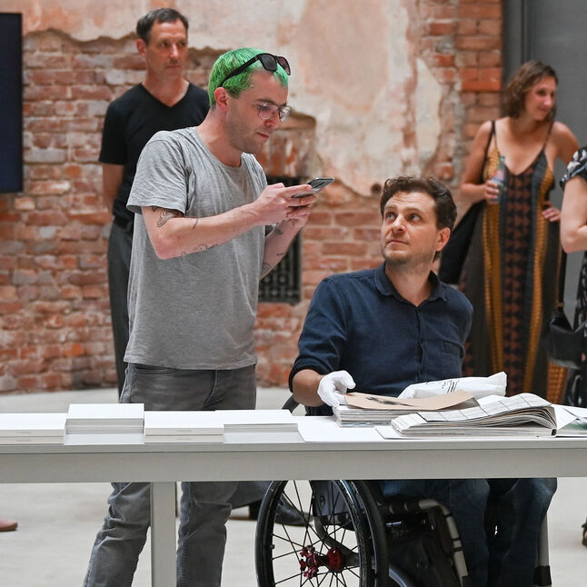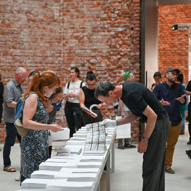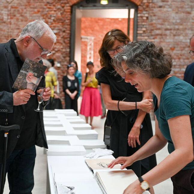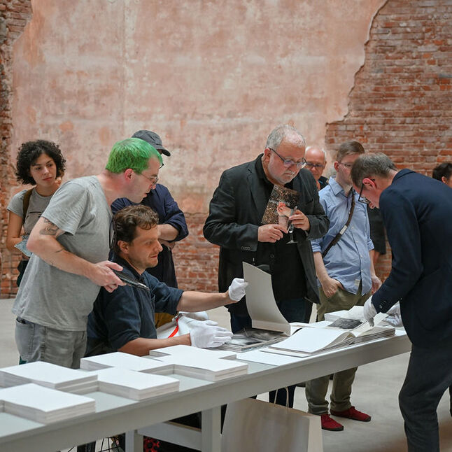 Am 28. Juni 2022 um 19 Uhr wurde im Oktogon der Hochschule für Bildende Künste Dresden eines der beiden Originale des Künstler:innenbuches "Verschwinden" an der Kupferstichkabinett der Staatliche Kunstsammlungen Dresden (SKD) im Beisein der Direktorin des Kupferstichkabinetts Dr. Stephanie Buck, übergeben. Das zweite Original geht in das Archiv der Hochschule über. Analog zur Übergabe wurde auch der Katalog zum Künstler.innenbuch vorgestellt.