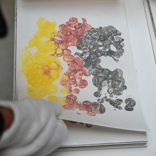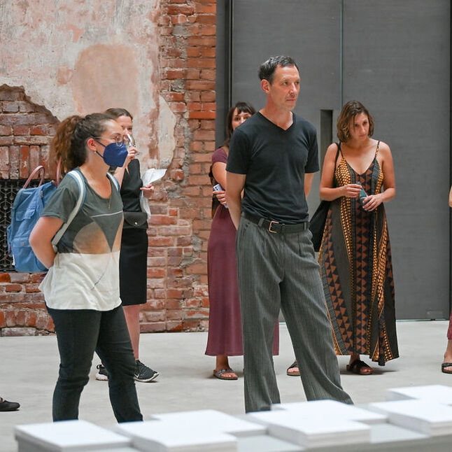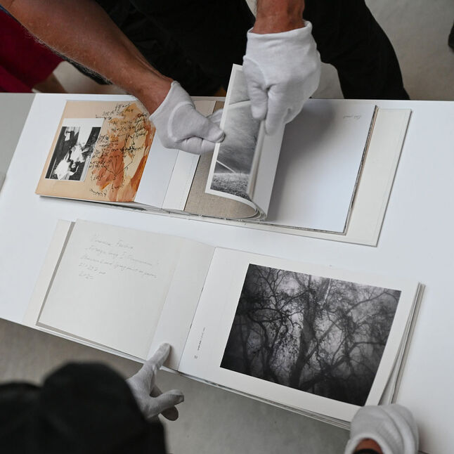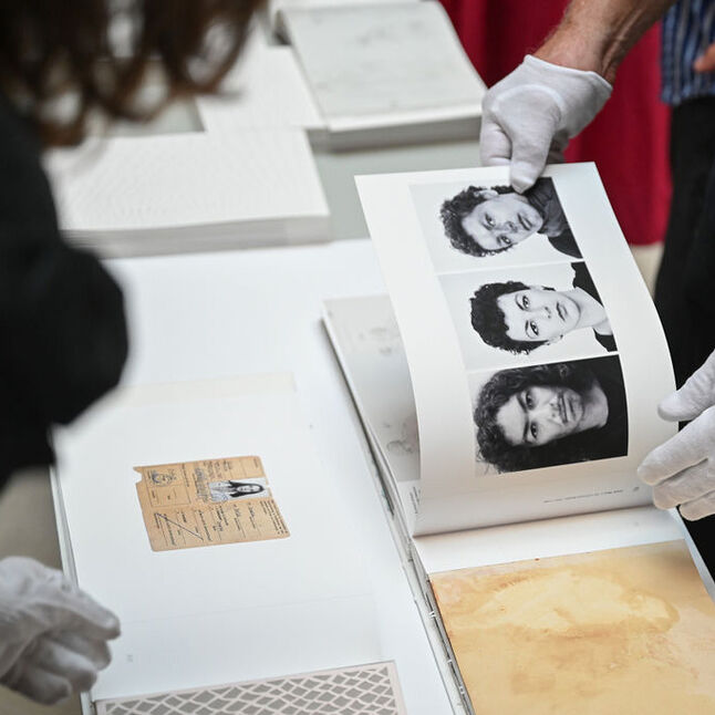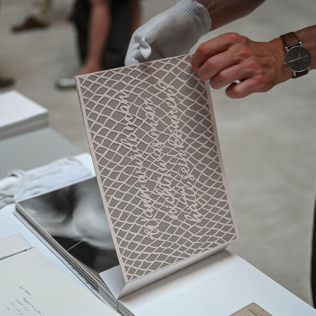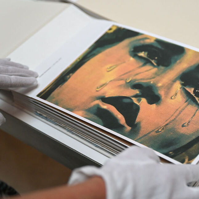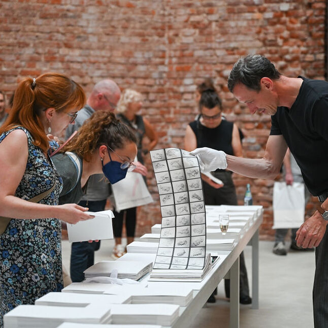 Das Künstler:innenbuch wurde 2021 in Rahmen der EU4ART-Ausstellung "Existenz Kapitel 2: Spuren" kreiert. Leider konnte aufgrund der pandemischen Situation das Buch lange Zeit nicht an das Kupferstichkabinett übergeben werden - nun endlich gab es einen würdigen Abschluss. Das Buch beinhaltet über 80 künstlerische Position von Studierenden und Künstler:innen aus den vier EU4ART-Partnerakademien zum Schwerpunkt des Verschwindens. Wer nicht bei der Übergabe dabei sein und das Buch im Original anschauen konnte, der kann über folgendes Video einen Einblick gewinnen: